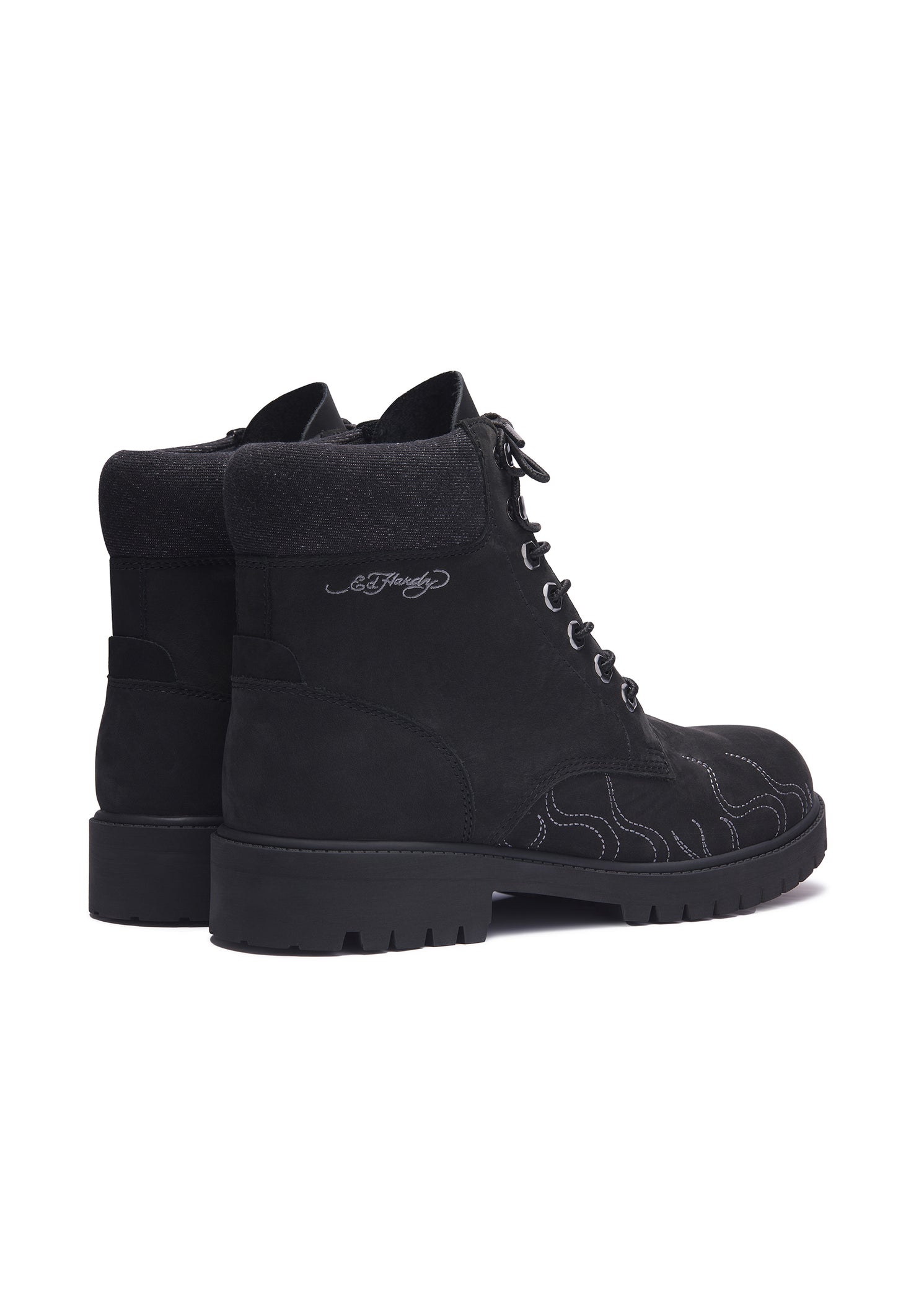 Ed Hardy Mens Embroidered Flame Work Boot – Black